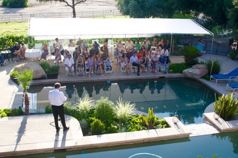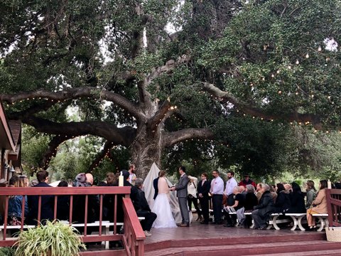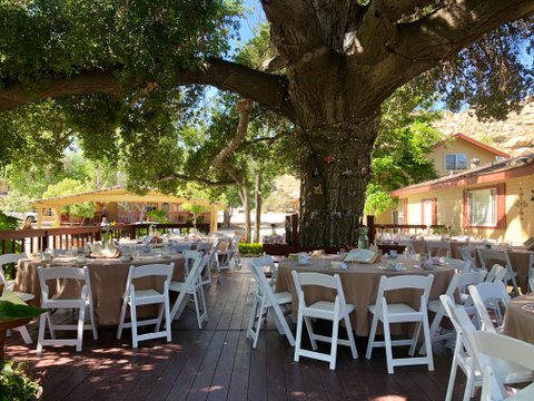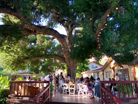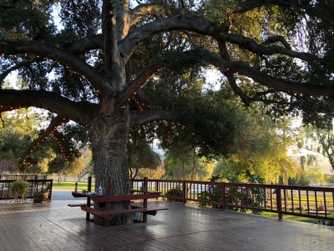 Located central to the ranch is our grand oak tree, estimated to be hundreds of years old. With a wrap-around deck, this location is great for cocktails or a casual dinner. Pull up a chair and grab a cool beverage, as this is the best place to relax and enjoy the views of the ranch when the sun dips and the shadows grow long. On warm days, this shady place is a great spot to cool down and catch the breeze. At night time, the tree magically comes "alive" with hundreds of market lights attached to its gigantic, sweeping branches.