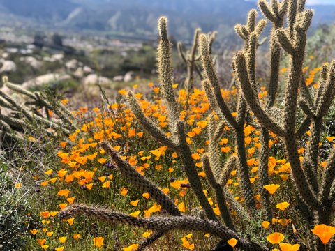 Golden hour is BEST on The Ranch! With the most beautiful desert landscape between Temecula and Joshua Tree, our ranch is literally a photographer's paradise. The granite boulders of the Jojoba Hills creates a jaw-dropping backdrop and is peppered with cacti and natural desert flora. Looming in the distance is the blue Palomar mountain range. Every spring beginning in March, the ranch awakens anew with desert wildflowers that linger well through June. In recent suberbloom years, our ranch has had its own bloom of orange California poppies. Fall brings cooler temperatures and yellow leaves, while winter brings the most phenomenal water-color desert sunsets.